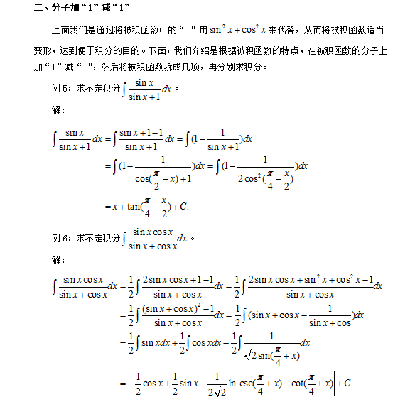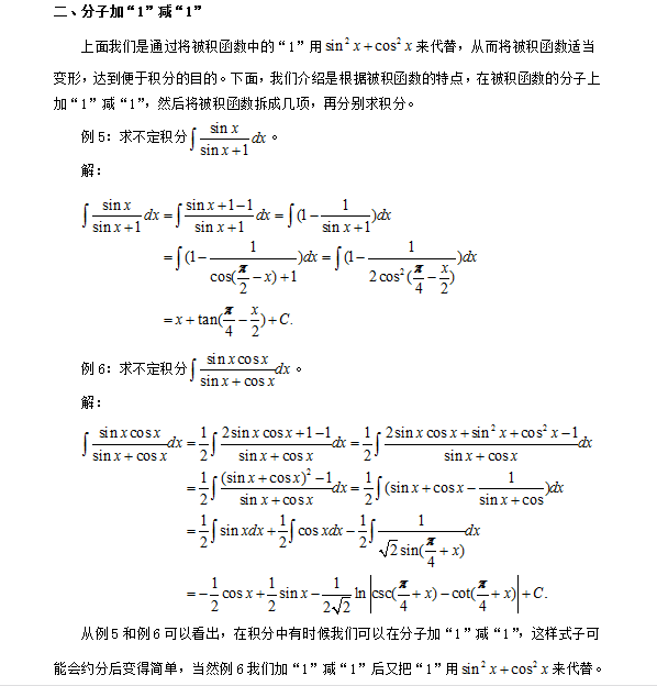 2019年考研數(shù)學(xué):“1”在求三角函數(shù)不定積分中的妙用