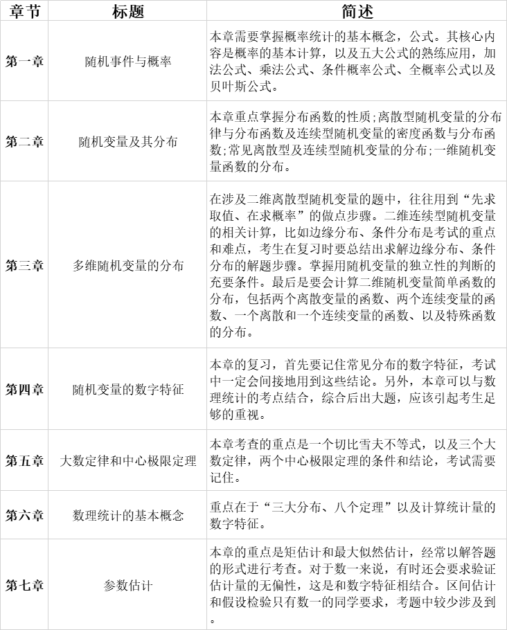 在復(fù)習(xí)概率與數(shù)理統(tǒng)計的過程中,把握住每章節(jié)的考試重點,概率一定能取得好成績。
