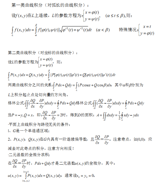 干貨:2021考研高數(shù)公式總結(jié)之曲線積分