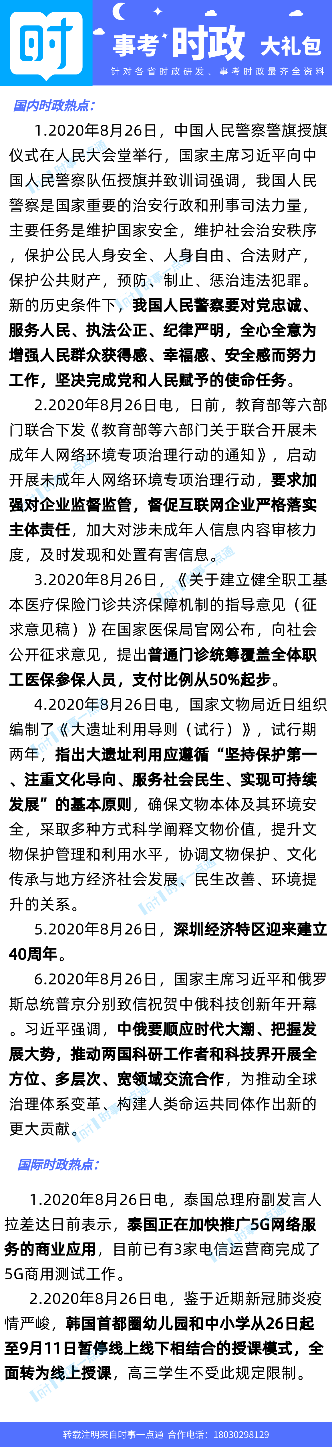 干貨:2020年國(guó)內(nèi)外時(shí)政考點(diǎn)(8.27)