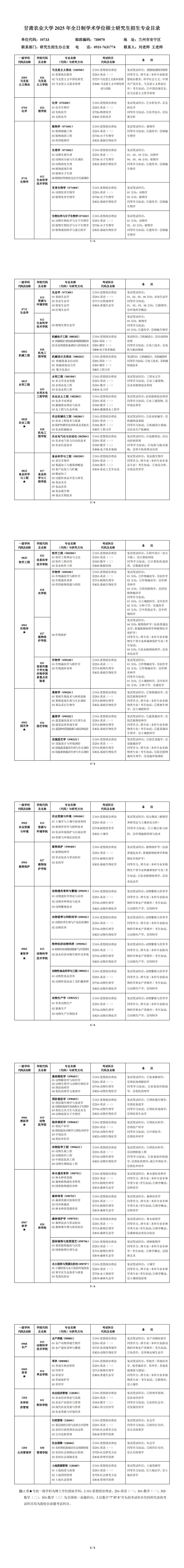 甘肅農(nóng)業(yè)大學 2025 年全日制學術學位碩士研究生招生專業(yè)目錄