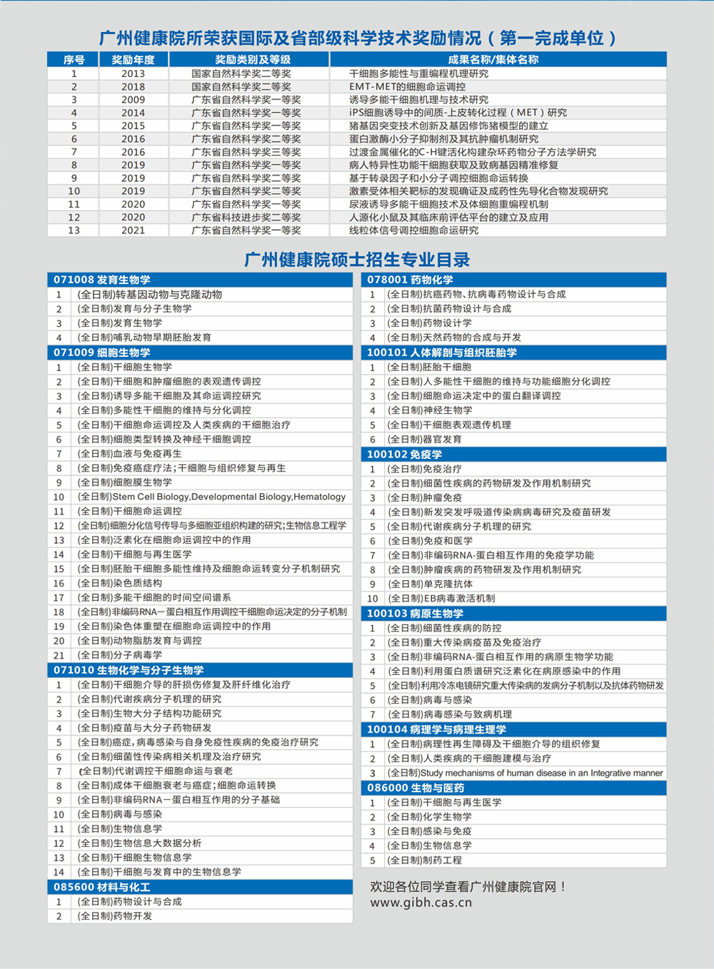 中國科學(xué)院廣州生物醫(yī)藥與健康研究院招生宣傳介紹
