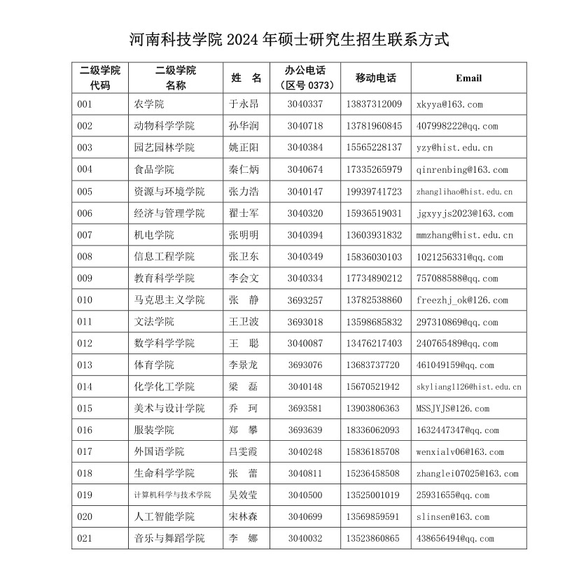 河南科技學院2024年碩士研究生招生聯(lián)系方式