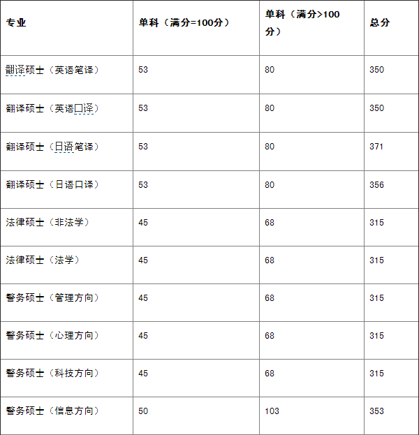 國際關(guān)系學(xué)院2016年專業(yè)學(xué)位碩士研究生復(fù)試分?jǐn)?shù)線