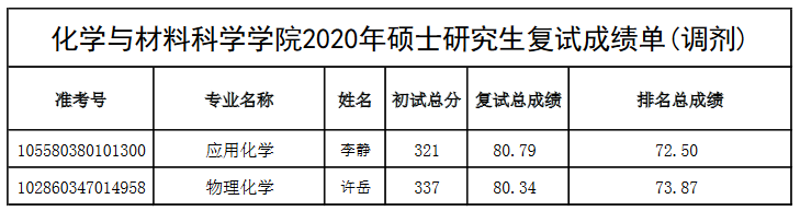 2020年淮北師范大學(xué)化學(xué)與材料科學(xué)學(xué)院碩士研究生復(fù)試成績單(二次調(diào)劑)