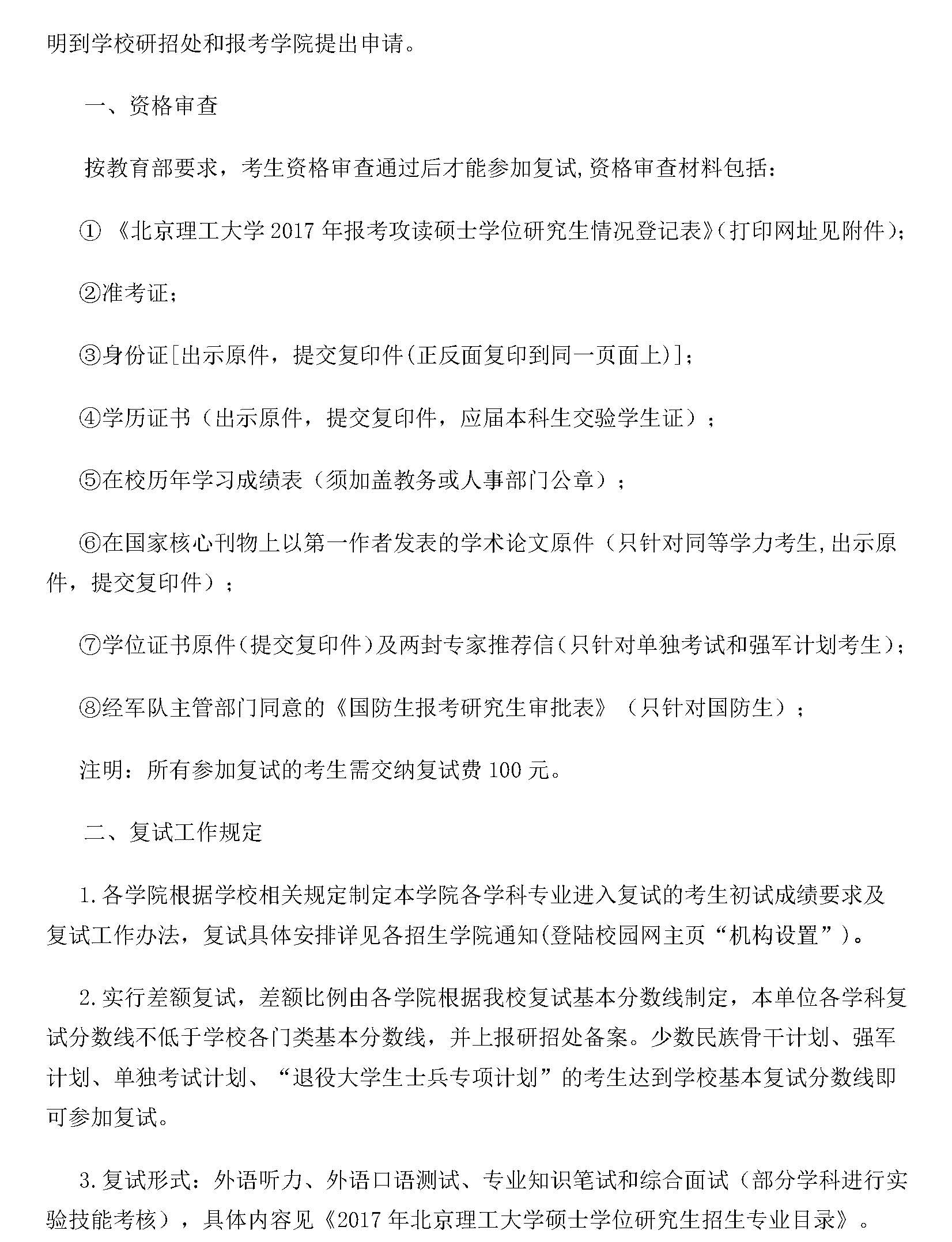 北京理工大學(xué)2017年碩士研究生招生考試復(fù)試工作有關(guān)安排