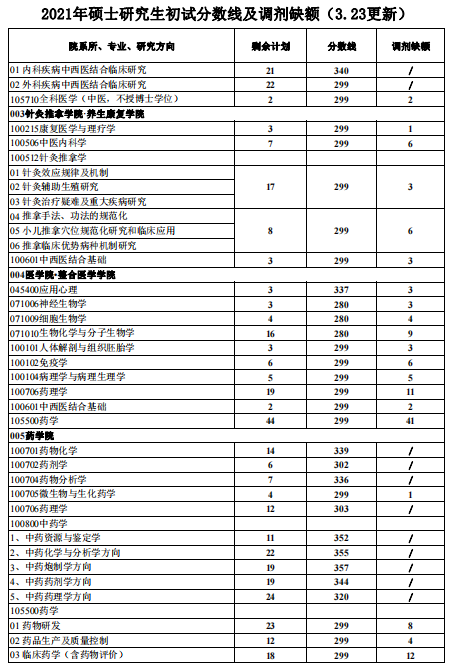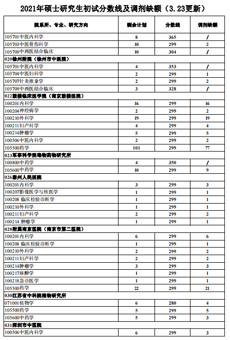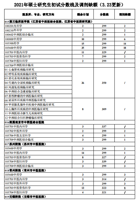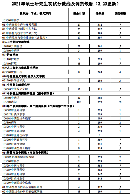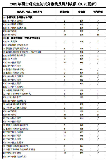 南京中醫(yī)藥大學(xué)2021年碩士研究生復(fù)試分?jǐn)?shù)線及接收調(diào)劑信息