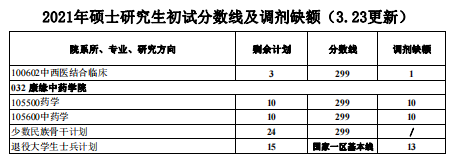 2021年碩士研究生初試分?jǐn)?shù)線及調(diào)劑缺額