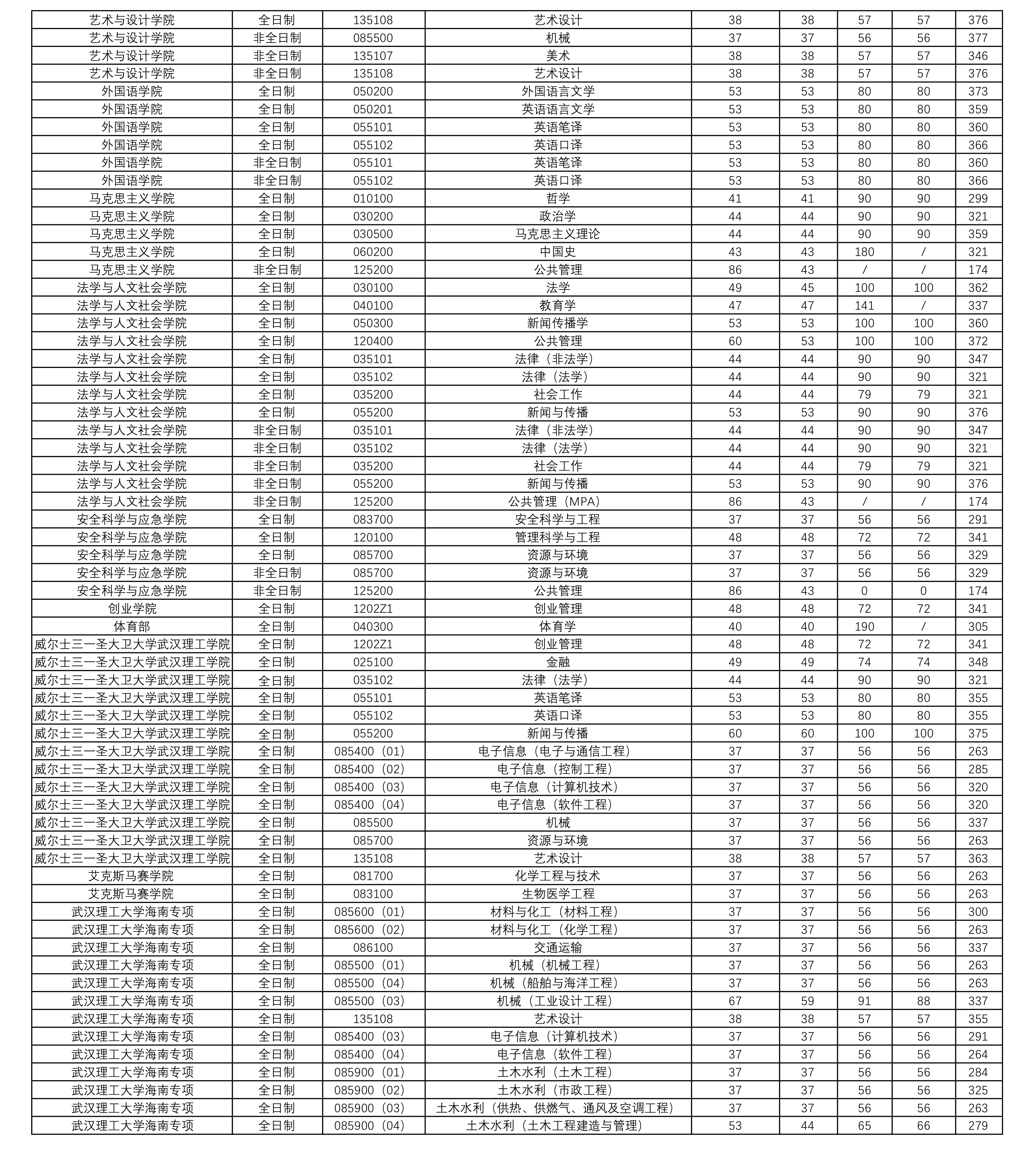 武漢理工大學(xué)2021年碩士研究生招生復(fù)試分?jǐn)?shù)線