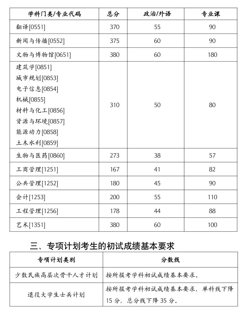 1.以上為考生進(jìn)入我校復(fù)試的初試成績(jī)基本要求,各學(xué)院可根據(jù)招生計(jì)劃、生源情況、學(xué)科專業(yè)特點(diǎn)等制定不低于學(xué);疽蟮谋驹合祵W(xué)科(專業(yè))復(fù)試分?jǐn)?shù)線。