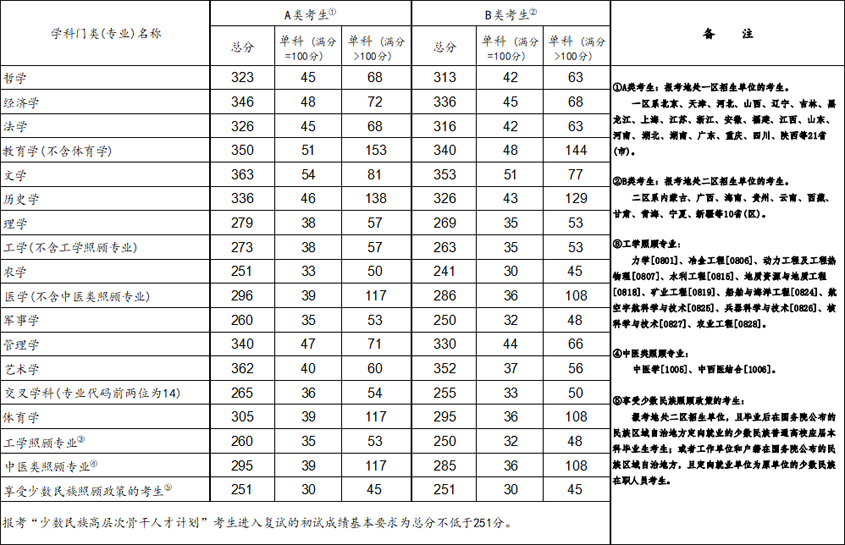 教育部同時發(fā)布《2023年全國碩士研究生招生考試考生進(jìn)入復(fù)試的初試成績基本要求》(國家分?jǐn)?shù)線)。根據(jù)《2023年全國碩士研究生招生工作管理規(guī)定》,各招生單位將在國家分?jǐn)?shù)線的基礎(chǔ)上,自主確定并公布本單位考生進(jìn)入復(fù)試的初試成績要求及其他學(xué)術(shù)要求。