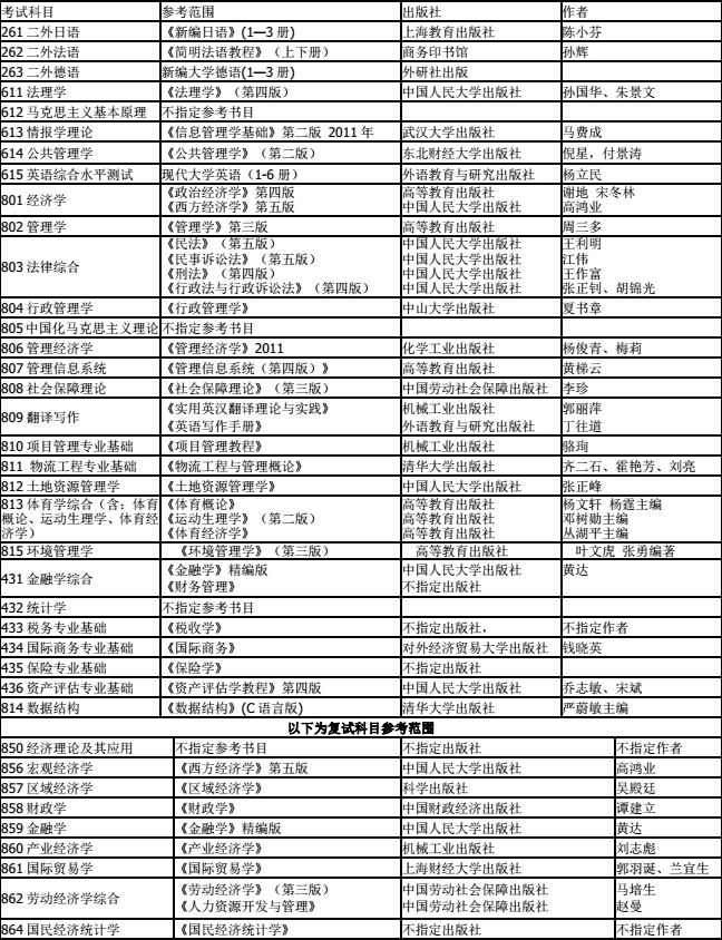 山西財經(jīng)大學(xué)2017年碩士研究生參考書目