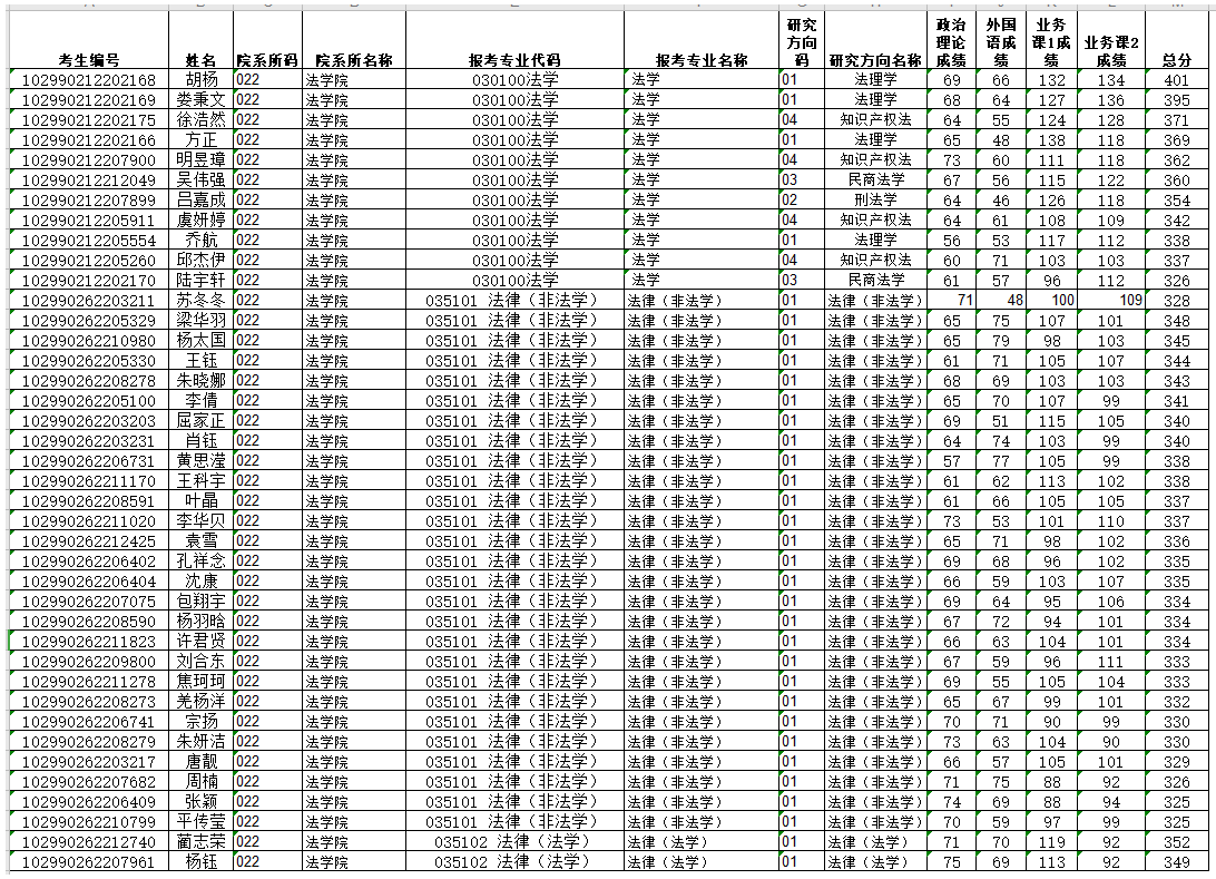 2020年江蘇大學法學院研究生招生一志愿復試名單