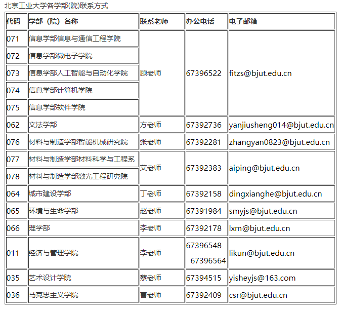 北京工業(yè)大學研招辦郵箱:yanzhaoban@bjut.edu.cn