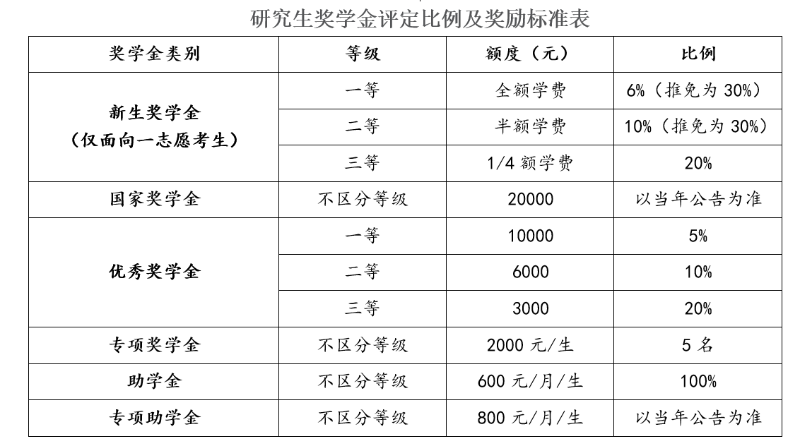 我院為碩士研究生提供豐富的獎助學金,獎助體系基本情況如下表所示: