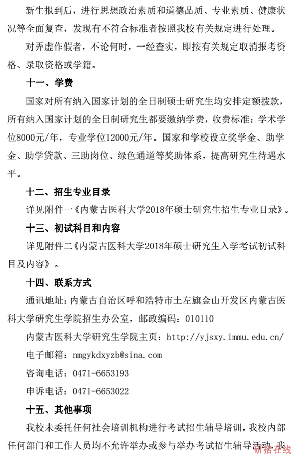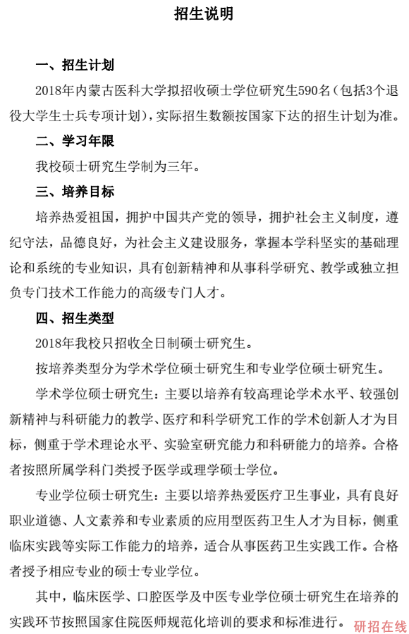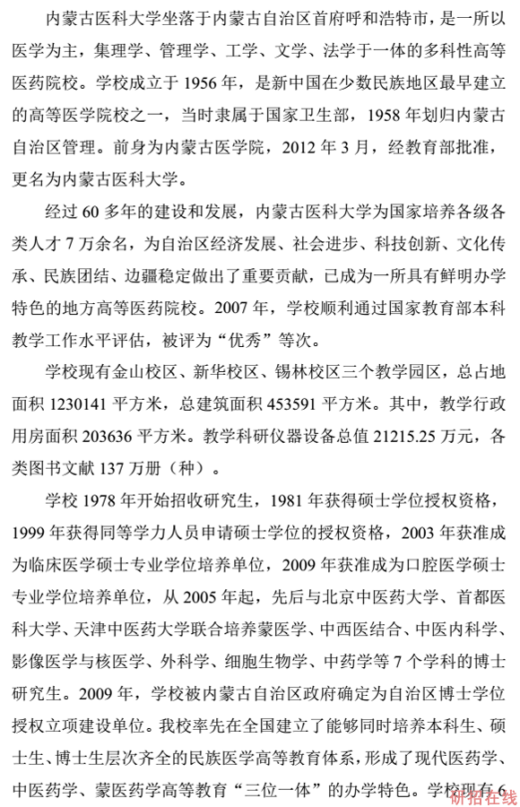 內(nèi)蒙古醫(yī)科大學2018年碩士研究生招生簡章