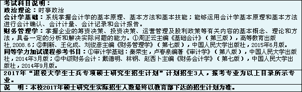 2.專(zhuān)業(yè)學(xué)位碩士研究生。2017年我校“會(huì)計(jì)碩士”專(zhuān)業(yè)學(xué)位碩士研究生擬招生40名。