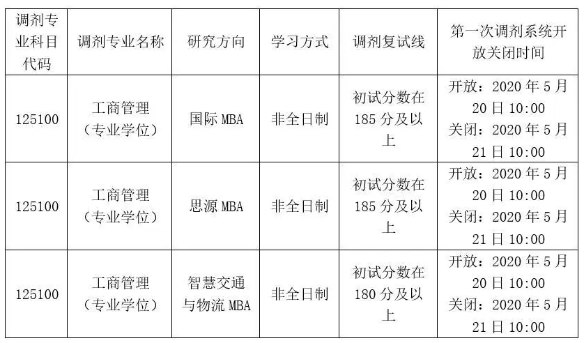 2020年北京交通大學(xué)MBA項(xiàng)目調(diào)劑意向信息采集工作現(xiàn)已開(kāi)始。有意調(diào)劑至我院非全日制MBA項(xiàng)目且符合《2020年北京交通大學(xué)MBA復(fù)試錄取工作辦法》中基本調(diào)劑條件的考生可以填報(bào)此調(diào)劑意向。調(diào)劑流程也按照此復(fù)試錄取工作辦法執(zhí)行。具體工作辦法請(qǐng)到北京交通大學(xué)MBA教育中心官網(wǎng)—招生動(dòng)態(tài)查看。