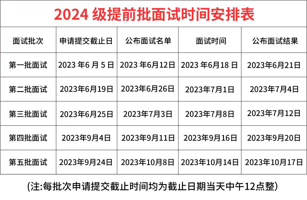 4. 面試批次時(shí)間安排(如遇面試時(shí)間與學(xué);蛏霞(jí)部門(mén)安排發(fā)生沖突而需要更改,則以后續(xù)通知為準(zhǔn))