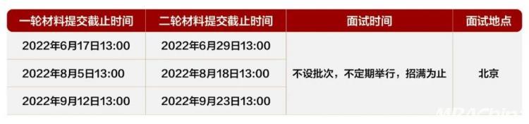 · 2023年非全日制MBA北京項(xiàng)目的一輪材料提交最終截止時(shí)間為2022年9月12日13:00,二輪材料提交最終截止時(shí)間為2022年9月23日13:00。