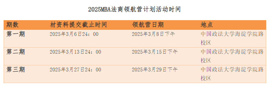 1. 中國政法大學(xué)2025年法商領(lǐng)航營與2025年全國碩士研究生招生考試報(bào)名、2025級(jí)MBA招生錄取無關(guān)。