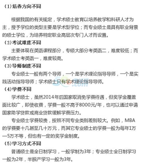 最近,不少同學問及學術(shù)碩士與專業(yè)碩士的區(qū)別,在糾結(jié)到底考什么類型的碩士比較好?為此收集了一些資料,簡單總結(jié)了學碩與專碩的八大區(qū)別,僅供大家參考!具體信息請以各校招生簡章為準。