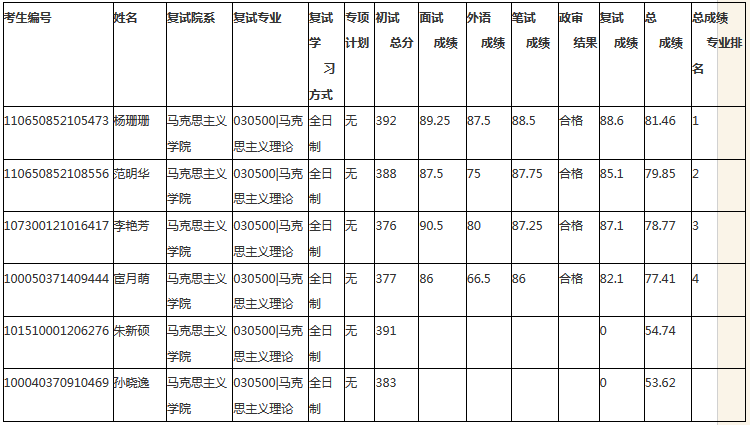 2020年青島理工大學(xué)馬克思主義學(xué)院統(tǒng)考碩士調(diào)劑考生總成績(jī)信息表