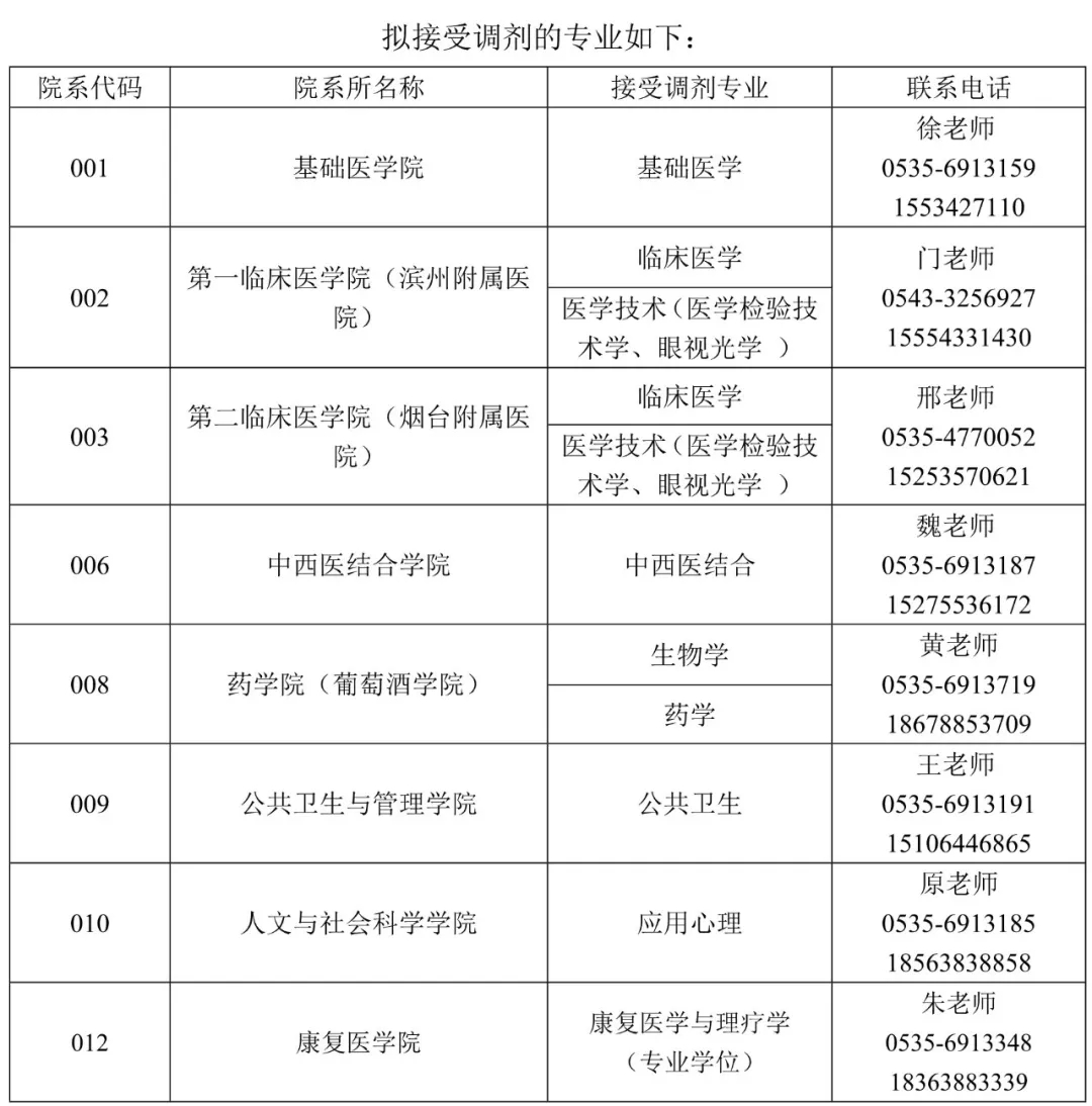 濱州醫(yī)學院2021年研究生招生復試調(diào)劑