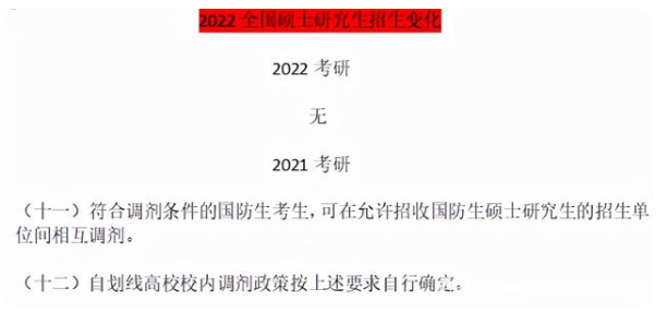 國(guó)防生不再招生,調(diào)劑政策刪掉很正常,但是“校內(nèi)調(diào)劑”也去掉了!這是什么情況呢?老師百思不得其解,但這個(gè)意思是以后都沒有“校內(nèi)調(diào)劑”了?!