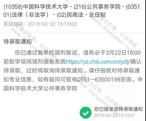 按照往年經(jīng)驗(yàn),的確存在修改了調(diào)劑志愿,仍然收到P學(xué)校復(fù)試通知的真實(shí)案例(學(xué)校特別稀罕你)。與“待錄取通知”一樣,“復(fù)試通知”下發(fā)的渠道并不是通過(guò)三個(gè)調(diào)劑志愿。只要填報(bào)了P校的調(diào)劑志愿,學(xué)校下載了你的信息,就可以給你下發(fā)“復(fù)試通知”和“待錄取通知”。