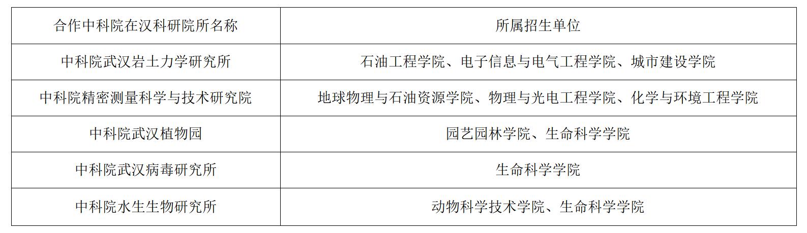 同時與中科院在漢科研院所共建科教融合學(xué)院聯(lián)合招生和培養(yǎng)碩士研究生,具體如下: