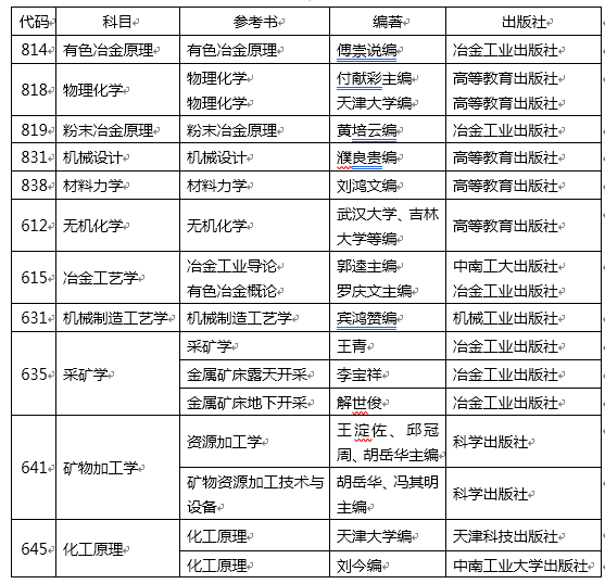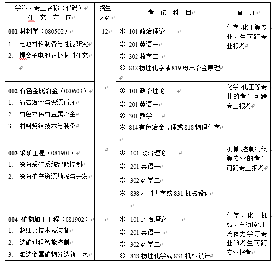 長沙礦冶研究院2020年碩士研究生招生專業(yè)目錄