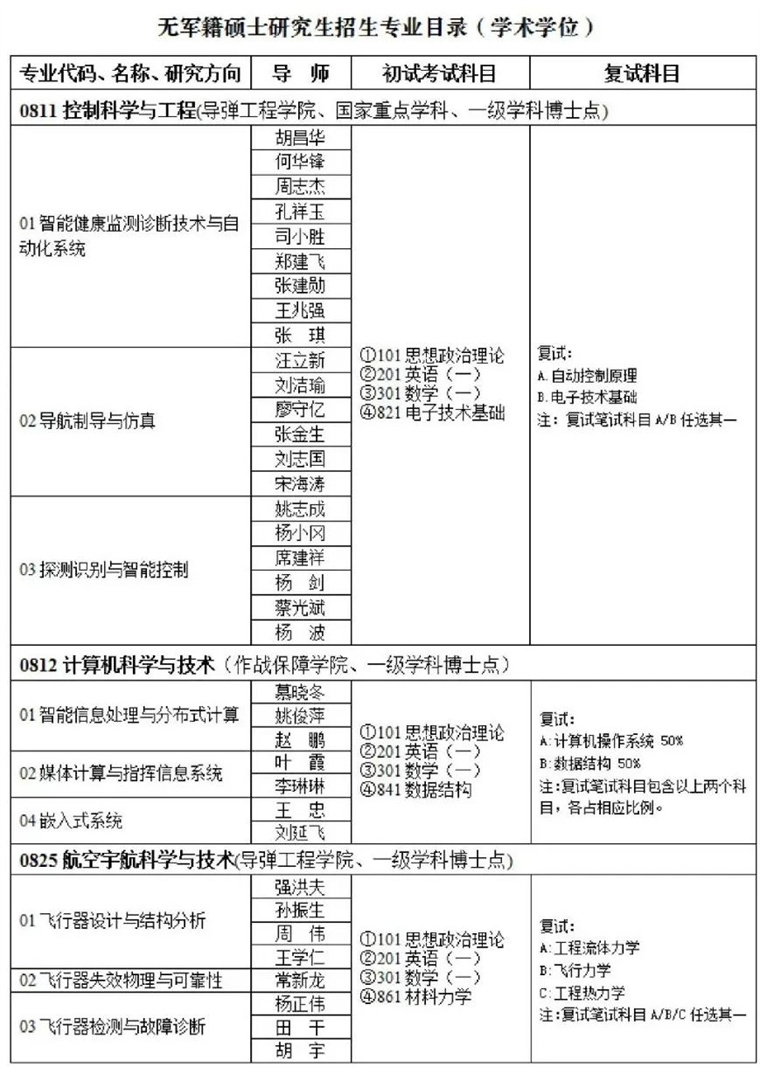 招生學(xué)科學(xué)術(shù)學(xué)位為控制科學(xué)與工程、計(jì)算機(jī)科學(xué)與技術(shù)、航空宇航科學(xué)與技術(shù)、兵器科學(xué)與技術(shù),專業(yè)學(xué)位為電子信息、機(jī)械。