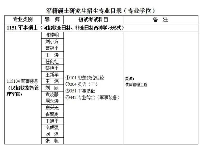 (3)軍事碩士專業(yè)學(xué)位研究生僅限招收上尉以上軍銜的指揮管理軍官;