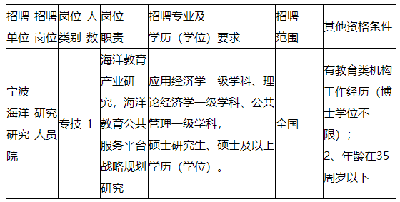 根據(jù)《寧波市事業(yè)單位公開招聘工作人員實(shí)施辦法》的有關(guān)規(guī)定,經(jīng)寧波市人力資源和社會保障局同意,寧波海洋研究院決定面向全國公開招聘事業(yè)編制工作人員1名。現(xiàn)就有關(guān)事項(xiàng)公告如下: