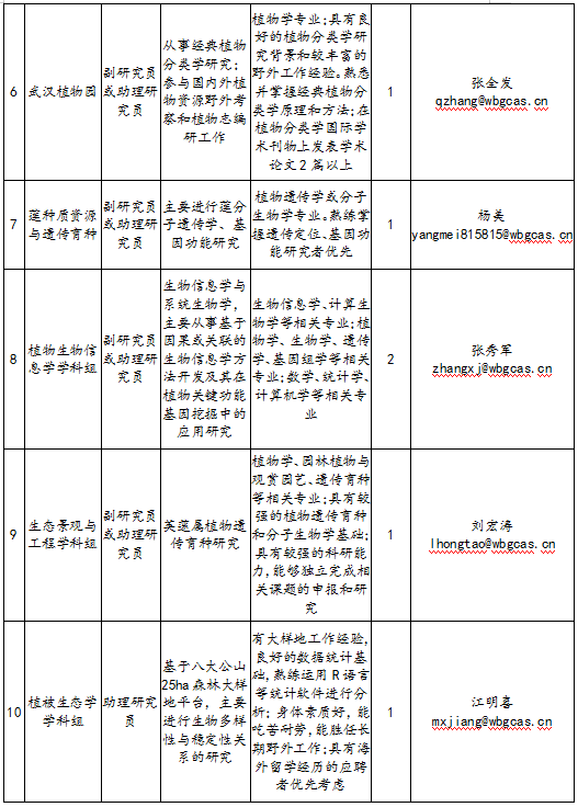 注:以上研究組組長介紹請登錄中國科學院武漢植物園網(wǎng)頁“研究隊伍”中查看