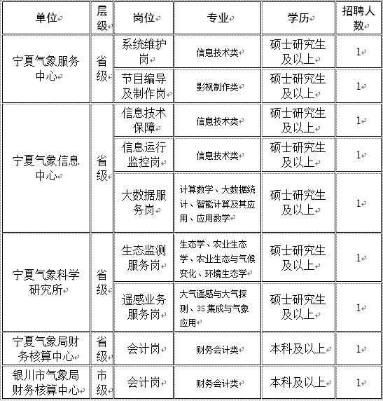 寧夏氣象局2020年公開招聘全日制普通應(yīng)屆高校畢業(yè)生